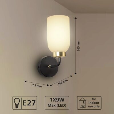 Philips Glow Black & Brass Wall Light | Decorative Indoor Wall Lamp For Bedroom & Hall | Bulb Base : E27 (Bulb Not Included)