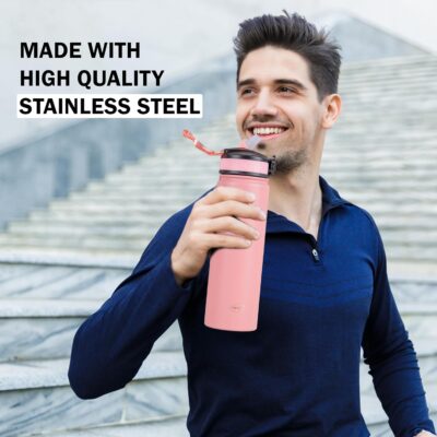 Stay refreshed and stylish with the Pigeon by Stovekraft Rush Thermos Stainless Steel Sipper Flask (1000 ml, Pink) — a perfect blend of innovation, functionality, and vibrant design. Crafted with double-wall vacuum insulation, it maintains your beverage’s temperature for up to 24 hours, keeping your drink hot or cold throughout the day.