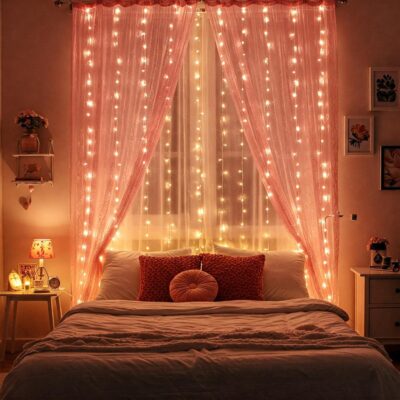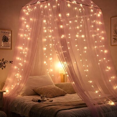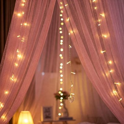 Pink Canopy Decoration Net Cloth (5m) with Lights – Bedroom & Event Decor