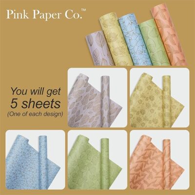 Pink Paper Co. Gift Wrapping Paper Sheets offer a vibrant and stylish way to enhance your gifting experience. This assorted pack of 5 premium sheets, each measuring 19 x 28 inches, features beautiful designs perfect for birthdays, anniversaries, festive occasions, and return gifts. The set also includes convenient name stickers, making it easy to personalize each present with a neat and thoughtful touch. With their smooth texture and attractive patterns, these high-quality wrapping papers ensure your gifts look elegant, tidy, and professionally presented.
