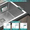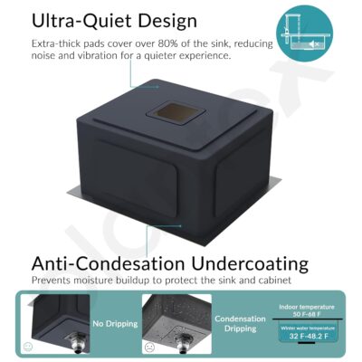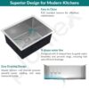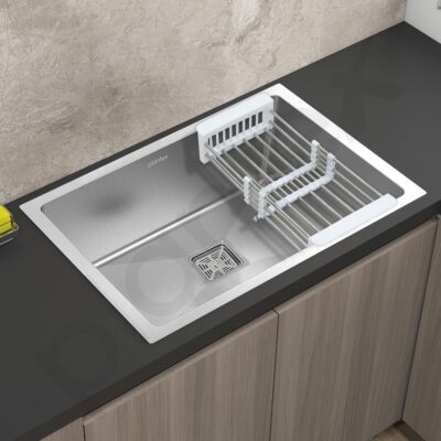 The matte finish adds a sophisticated touch while minimizing water stains and scratches. This sink comes complete with a square coupling, hose pipes, and a convenient drain rack for enhanced functionality.