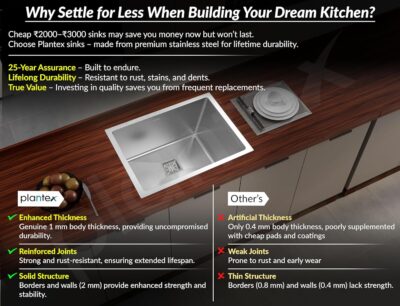 Plantex Heavy-Duty Stainless-Steel Kitchen Sink (Matt Finish, 24x18x9 Inches) is a robust and premium-quality single bowl sink designed for long-lasting performance in modern kitchens. Made from high-grade heavy-duty stainless steel, it offers excellent durability, corrosion resistance, and strength to withstand daily use. The matte finish adds a sophisticated touch while minimizing water stains and scratches. This sink comes complete with a square coupling, hose pipes, and a convenient drain rack for enhanced functionality. Backed by an impressive 25-year warranty, it ensures reliable performance, easy maintenance, and elegant design, making it a perfect fit for contemporary homes and commercial kitchens.