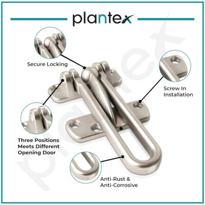 Enhance your door security with the Plantex Heavy Duty Swing Bar Lock/Door Safety Guard, crafted from high-quality zinc material with a matt finish for superior strength and durability. Built to be scratch-proof, rust-proof, and corrosion-resistant, this safety lock ensures long-lasting performance and reliability.