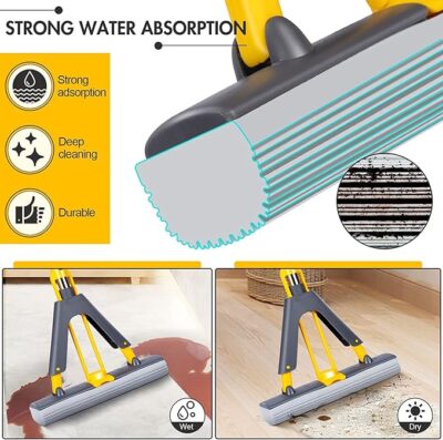 The Poly Mop PVA Sponge Mop is a practical and user-friendly floor cleaning system that simplifies routine mopping with its wash, dry, and store design. It features an ultra-absorbent PVA sponge head capable of soaking up water, spills, and dust efficiently, helping leave surfaces clean and streak-free with fewer passes — ideal for tiles, wood, marble, laminate, and similar hard floors. The mop comes with a durable extendable stainless steel handle that adjusts to a comfortable length for users of varying heights, reducing back strain during cleaning. The accompanying compact pail lets you rinse and wring the sponge without touching dirty water, making the process hygienic and less messy. Designed for convenience, this mop set also supports easy storage and typically includes additional features like replaceable heads or handy drainage, making it a versatile choice for everyday home or office floor care.