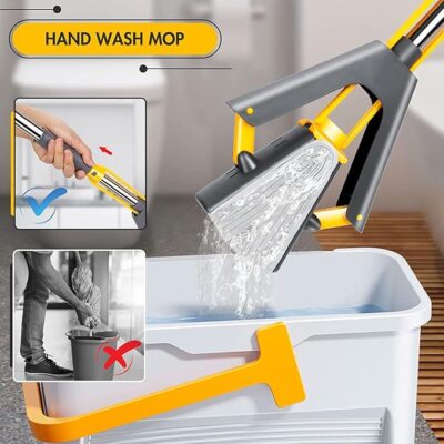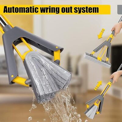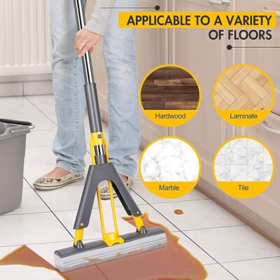 The mop comes with a durable extendable stainless steel handle that adjusts to a comfortable length for users of varying heights, reducing back strain during cleaning.