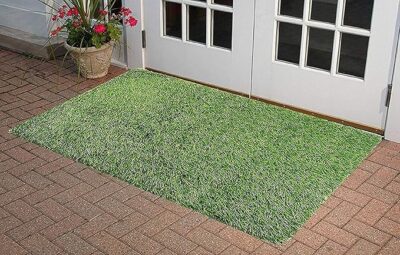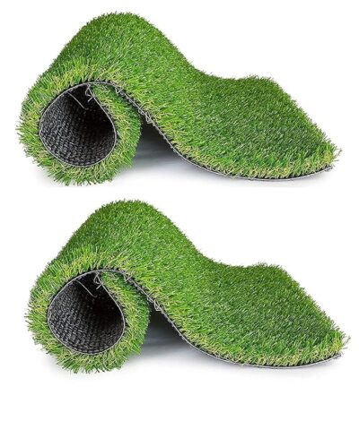 Polyester Artificial Grass Door Mat (16 x 24 inches) (41 x 61 cm) Pack of 2, Green, Rectangular