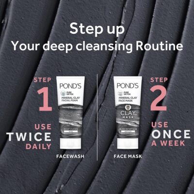 POND’S Pure Detox Mineral Clay Mask is infused with activated charcoal and mineral clay to deliver 4X oil absorption power. It deeply detoxifies the skin by drawing out dirt, impurities, and excess oil from clogged pores, giving you a clean, fresh, and oil-free glow. The creamy texture spreads easily and rinses off smoothly, making it ideal for oily and combination skin types.
