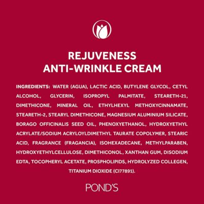 Pond’s Rejuveness Anti‑Wrinkle Cream combines Alpha Hydroxy Acids (AHA) and Collagen to visibly smooth fine lines and wrinkles. This rich, hydrating moisturizer supports skin renewal and improves firmness, leaving the complexion looking refreshed and youthful. Ideal for daily use, the lightweight yet nourishing formula delivers long‑lasting hydration and anti‑aging benefits without heaviness.
