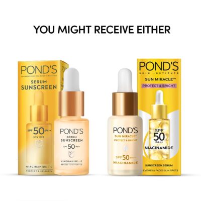 Be the first to review “Ponds Sun Miracle SPF 50 PA++ Sunscreen Serum – Protect & Bright, With 1.25% Niacinamide, Prevent & Fade Dark Spots, Lightweight, No White Cast 14ml”