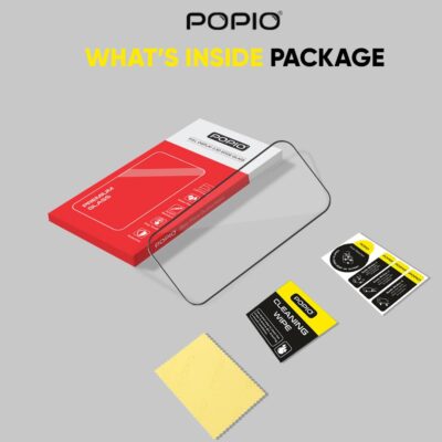 POPIO Military-Grade Gorilla Tempered Glass offers strong, edge-to-edge protection for iPhone 15 and iPhone 16. It features 9H hardness, ultra-clear HD visibility, and easy, bubble-free installation for long-lasting clarity.