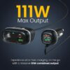 Portronics Car Power Trail 111W Car Charger, 4 Port Fast Car Charger, Dual 30W Type-C PD, Dual 22.5W USB-A, Front&Back Seat Charging with Cigarette Lighter Socket, Car Travel Essentials for Road Trips