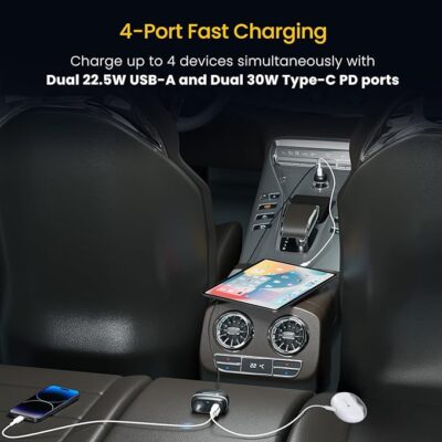 It features dual 30W Type-C Power Delivery (PD) ports and dual 22.5W USB-A ports, enabling simultaneous fast charging of up to four devices without compromising speed or safety.