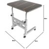 The black finish lends a modern, neutral aesthetic that fits a variety of interior styles. Key strengths are its height-adjustability, mobility via wheels, compact size and metal + engineered wood build.
