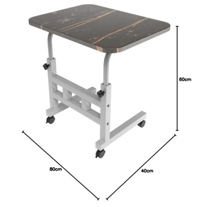 Elevate your work-or-study setup with this stylish yet functional mobile table from Portronics: designed with an engineered-wood top finished in a sleek black (or wood-texture) look, paired with a sturdy metal frame and caster wheels for effortless mobility. The height is fully adjustable — typically from around 52 cm up to 80 cm — allowing you to sit upright, lounge on a sofa or even use it as a standing desk. The integrated wheels include safety-locks so you can roll it into position and then keep it stable. Its compact footprint (roughly 40 cm depth × 60 cm width) makes it a smart choice for smaller bedrooms, apartments or multi-purpose rooms while still offering ample surface for a laptop, notebook and a few accessories. Assembly is designed to be quick (10-20 minutes) with included tools and hardware.  Whether you’re using it as a laptop desk beside the sofa, a study table in a compact space, or a flexible workstation that moves with you from room to room, this model blends mobility, adjustability and minimalist design. The black finish lends a modern, neutral aesthetic that fits a variety of interior styles. Key strengths are its height-adjustability, mobility via wheels, compact size and metal + engineered wood build. You might want to check the weight capacity (some listings mention up to ~10 kg) to ensure it suits heavier monitors or dual-screen setups.
