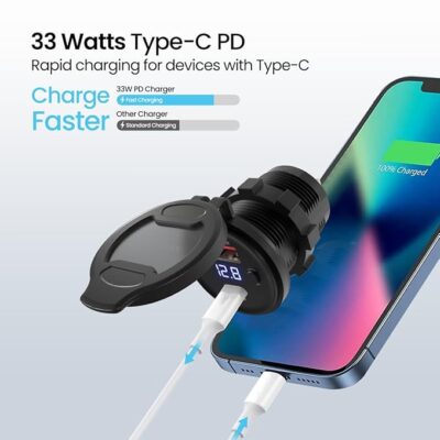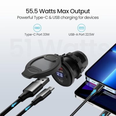 Portronics Spark 51W Multi-Vehicle Phone Charger is a powerful and versatile charging solution specially designed for motorcycles and scooters, ensuring your devices stay powered even on long rides. It features dual output ports with a 33W Type-C Power Delivery (PD) port and an 18W USB fast-charging port, allowing you to charge two devices simultaneously with optimal speed and efficiency. Built to withstand everyday riding conditions, it offers stable and safe charging performance for smartphones, navigation devices, action cameras, and other USB-enabled gadgets. With its compact, rider-friendly design, easy installation, and advanced protection against over-voltage, overheating, and short circuits, the Portronics Spark 51W is an ideal companion for commuters and touring riders who need reliable, high-speed charging on the move.