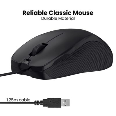 Its ergonomic shape and practical black finish make it a solid, affordable choice for students, professionals, and casual users looking for a no-nonsense wired optical mouse.