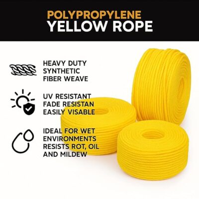 PP Tuf Rope – 220 Mtr Heavy Duty Nylon Virgin Plastic Rope (Yellow, 2 mm) is a long-lasting and multipurpose rope ideal for a variety of everyday and utility needs. Made from virgin nylon plastic (PP), this rope combines high tensile strength, flexibility, and weather resistance, making it suitable for clothes drying, packing, gardening, DIY projects, fishing, and more. With an impressive 220-meter length, it offers extensive reach — perfect for large drying areas, long-distance tying, or bulk household and outdoor tasks. The 2 mm thickness provides a balance of strength and lightweight handling, while the vibrant yellow color ensures good visibility and easy use. Durable and easy to install, this PP Tuf Rope is a reliable and versatile solution for both indoor and outdoor applications.