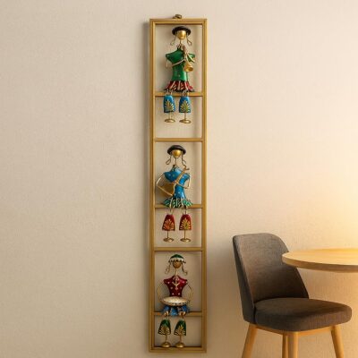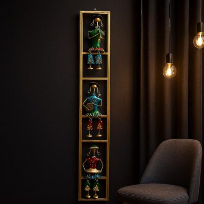 Add a touch of cultural charm and artistic expression to your interiors with the Pranjal’s House Rajasthani Metal Musician Wall Décor. This handcrafted iron wall hanging features three intricately designed musicians, symbolizing traditional Indian art and rhythm.