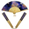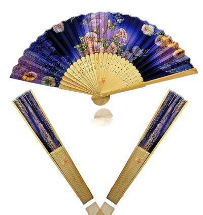The Premium Gold Printed Floral Wooden Handheld Fan in the elegant Midnight Bloom design is a perfect blend of sophistication and functionality. Measuring 15 inches, this beautifully crafted fan features rich floral artwork accented with luxurious gold detailing, creating a stunning visual appeal. The sturdy wooden frame ensures durability, while the smooth folding action makes it convenient to carry and use anywhere. Ideal for weddings, parties, dance performances, cultural events, décor, and gift-giving, this single premium fan adds a touch of timeless beauty to any occasion.