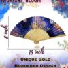 Premium Gold Printed Floral Wooden Hand Held Fan (15 Inch) (Pack Of 1 Piece, Midnight Bloom)