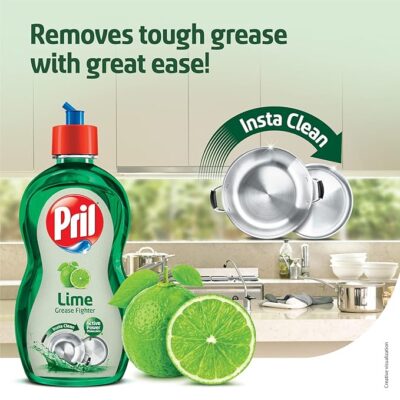 Pril Lime Liquid Dishwash Gel – 225 ml is an effective dish-cleaning solution formulated with German technology to deliver superior grease removal and spotless cleaning. Its active power molecules work deep into tough grease and food residues to lift them off quickly, leaving your utensils sparkling clean with no residue. The refreshing lime fragrance adds a pleasant scent while you wash. Suitable for all types of utensils, Pril Lime Liquid Dishwash Gel makes everyday dishwashing easier and more efficient, giving you grease-free, shiny, and hygienic dishes every time.