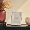 Showcase your cherished moments with the Pure Home and Living Aluminium Silver Check Photo Frame. Crafted from premium aluminium with a golden-finished brass edge, this 4×6 inch frame features a sophisticated silver check pattern that complements any décor. The glass front ensures clear visibility and protection for your photos. Easy to clean and designed for long-lasting shine, it’s perfect for gifting or adding an elegant touch to your home or office. (Note: Other items shown are for styling purposes only.)