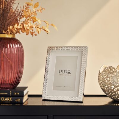Pure Home and Living Aluminium Silver Check Photo Frame (4x6 Inch)