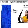 Q1 Beads 75 Meters Nylon 3 mm Clothesline for Drying Clothes Rope for Hanging Clothes in Balcony (Blue)-Pack of 1