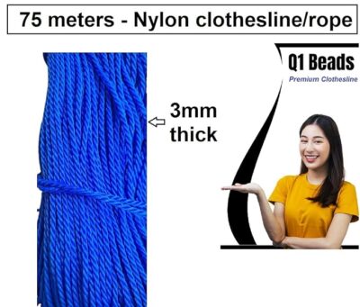 Q1 Beads 75 Meters Nylon 3 mm Clothesline for Drying Clothes Rope (Blue) – Pack of 1 is a long-lasting and versatile laundry solution perfect for large drying areas like balconies, terraces, and rooftops. Made from durable 3 mm nylon material, this clothesline offers excellent strength, flexibility, and weather resistance, ensuring it holds up well under daily use and varying outdoor conditions. With a generous 75-meter length, it provides ample space to hang clothes, bedsheets, towels, and other laundry items — ideal for big families or heavy laundry loads. The smooth nylon surface prevents snagging and protects fabrics while drying, and the vibrant blue color adds a bright, functional touch to your laundry setup. Easy to install and reliable in performance, this nylon clothesline rope is a practical choice for efficient and organized clothes drying.