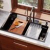QUALITO 24x18 Multifunction Kitchen Sink | Waterfall | All In One Kitchen Sink | Multifunctional Sink for Kitchen | 24x18 Black Stainless Steel Kitchen Sink