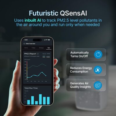 The Qubo Smart Air Purifier Q200 by Hero Group offers 99.99% allergen removal with HEPA H13 filtration and intelligent app and voice control. Ideal for 200 sq. ft. spaces, it ensures clean air with quiet, energy-efficient performance.