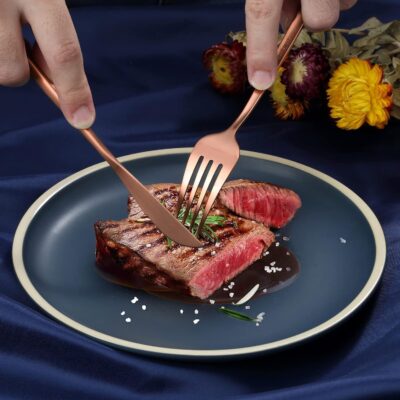 Crafted from 100% food-grade stainless steel, each piece features a vacuum electroplated rosegold finish that resists rust, fading, and chipping. The smooth, mirror-polished surface provides a refined look while ensuring easy cleaning—dishwasher safe and hand-wash friendly.