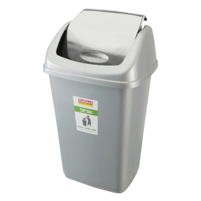 The RATAN Plasticware Tidy Bin is a 25-litre dustbin designed for versatile use in homes, kitchens, bathrooms, and offices. Made from durable plastic, it features a convenient swing lid that allows easy waste disposal while keeping the area neat and hygienic. Its compact design fits well in various spaces without occupying much room. The sleek grey color blends seamlessly with modern interiors.