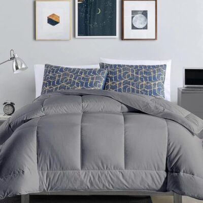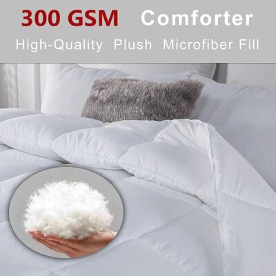 Wrap yourself in luxurious comfort with this king-size comforter designed for year-round use. With a generous dimension (approximately 233 × 269 cm / 92″ × 106″), it’s ideal for larger beds or those seeking extra coverage. The 300 GSM fill weight gives it wonderfully plush insulation — soft and “cloud-like” while still being manageable and not overly heavy. Crafted from premium microfiber, the outer shell is treated for smoothness and durability, and the box-stitched quilting ensures the filling stays evenly distributed and prevents clumping over time. Finished in a sophisticated silver tone (with options in many colors), the comforter is designed for easy care—machine washable, lightweight in feel, and suited to “all-weather” use (whether crisp nights or milder ones). In short, it’s a strong choice for someone looking to upgrade their bedding with a stylish, comfortable, high-quality comforter that gives hotel-style softness, durability, and generous sizing.