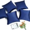 RD TREND® Satin Cushion Covers 18 Inch x 18 Inch | Decorative Throw Pillows for Sofa, Couch, Living Room, Home Décor Cushion Cover Set of 5 (Blue)