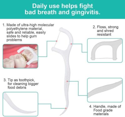 RECLUSE Pack of 90 Teeth Cleaning Inter-dental Floss Tooth Picks are specially designed for effective and convenient daily oral care, especially for hard-to-reach molar teeth. Made from high-toughness, durable plastic, these disposable floss sticks feature strong, shred-resistant floss that easily removes trapped food particles and plaque between teeth. The slim interdental design ensures deep cleaning along the gum line, helping to maintain healthy gums and fresh breath. With an easy-grip ergonomic handle for better control and comfort, RECLUSE dental floss picks are ideal for use at home, at work, or while traveling, making oral hygiene simple and hygienic anytime, anywhere.