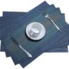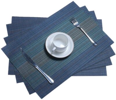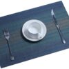 Rectangular Heat-Resistant Woven PVC Vinyl Stain Resistant Placemat for Dining Table - Easy to Clean - Set of 6 Pieces (Berry Blue)