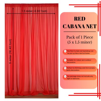 Add a vibrant touch to your celebrations with the 1iAM Red Decoration Net. Made from 100% premium nylon, this soft and lightweight net cloth measures 5×1.5 meters (16×5 ft), making it ideal for a wide range of decorative setups. Whether you’re creating a cabana-style arrangement, a backdrop for birthdays, anniversaries, office events, or festive décor, this net offers exceptional flexibility and style.