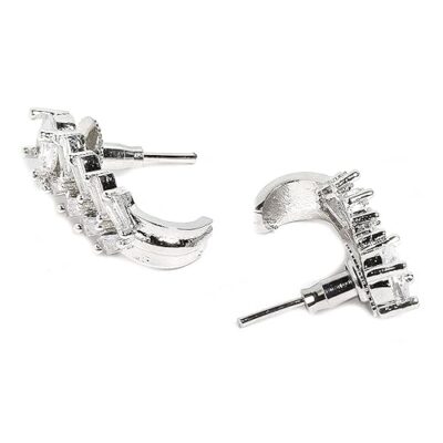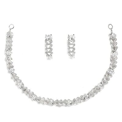 Rhodium Plated Silver Toned White American Diamond Studded Necklace With Earring Jewellery Set For Woment and Girl