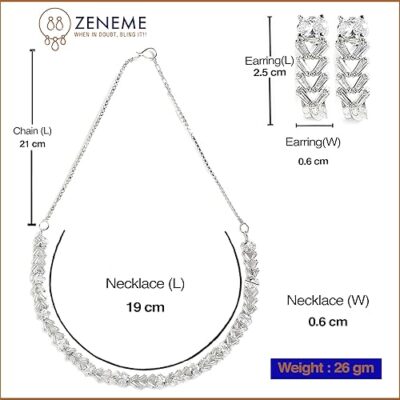 Be the first to review “Rhodium Plated Silver Toned White American Diamond Studded Necklace With Earring Jewellery Set For Woment and Girl”