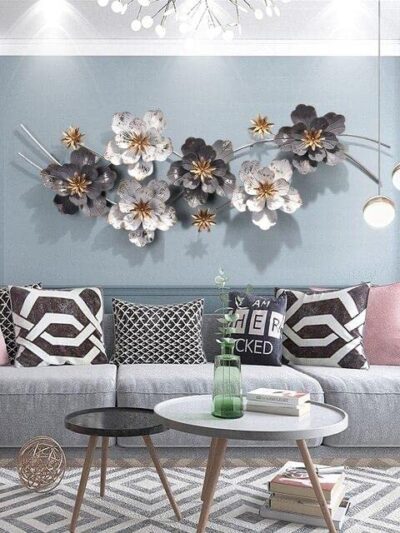 Elegant handcrafted metal wall sculpture in grey and white tones. Lightweight, durable, and easy to hang — perfect for living rooms, bedrooms, or offices.