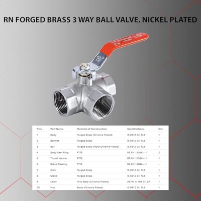 The RN Heavy-Duty Forged Brass Three-Way Ball Valve, Nickel Plated – 3/4″ (20mm) is engineered for precision, durability, and reliability in plumbing and industrial applications. Made from premium forged brass with a nickel-plated finish, this valve delivers superior corrosion resistance, leakproof performance, and long-lasting strength. Its three-way design allows for smooth directional flow control, making it ideal for complex piping systems. Built to withstand high pressure and temperature variations, it ensures consistent and efficient operation. Designed for easy installation and maintenance, this valve offers smooth handle operation and a tight shut-off mechanism for maximum safety. Supported by a 5-year warranty, the RN Three-Way Brass Ball Valve is a trusted choice for professionals seeking high performance and dependable plumbing solutions.