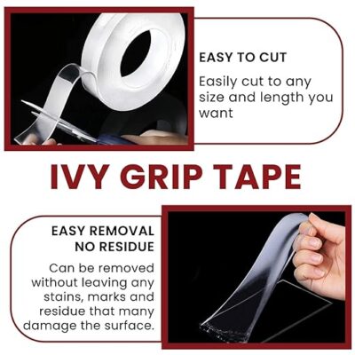 The Robustt Double-Sided Tape is a heavy-duty, transparent IVY grip tape designed for strong and reliable mounting in everyday applications. Measuring 3 meters in length and 3 cm in width, this tape provides excellent adhesion while remaining removable and completely traceless, ensuring walls and surfaces stay damage-free. Made from high-quality reusable gel material, it offers a firm anti-slip grip and can be washed and reused multiple times. Ideal for wall mounting, kitchen use, home décor, and DIY projects, the Robustt Nano Grip Tape adheres securely to smooth surfaces such as glass, tiles, metal, wood, and plastic, making it a practical alternative to nails and screws.
