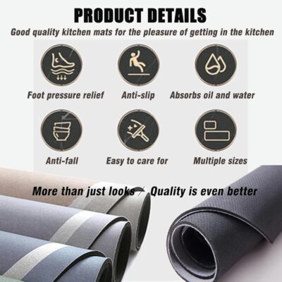 The non-slip rubber backing ensures stable grip on tiles, wood, marble, granite, cement, or vinyl floors, making them suitable for any room—kitchen, laundry, sink area, office, or home workspace. Crafted from non-toxic, BPA-free materials, they’re completely safe for homes with kids and pets.