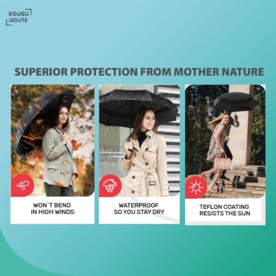 Roughhouse UV Umbrella – Auto Open/Close, Windproof, SPF 50+ Protection