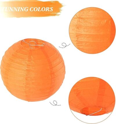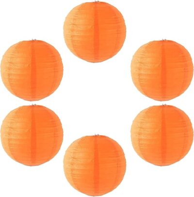 This set of 6 round Chinese/Japanese paper lanterns features vibrant 12-inch orange designs that bring warmth, brightness, and festive charm to any indoor or outdoor setting. Crafted from high-quality, lightweight paper with durable metal frames, these lanterns are easy to assemble, hang, and reuse while maintaining their perfect round shape. The bold orange color adds a lively and energetic touch, making them ideal for parties, birthdays, weddings, festivals, home décor, garden setups, and event decorations. Versatile and visually striking, these lanterns create a welcoming ambiance and can be paired with LED lights for an enhanced decorative glow. Perfect for adding cultural elegance and cheerful color, this 6-piece set is a stylish addition to any celebration or living space.