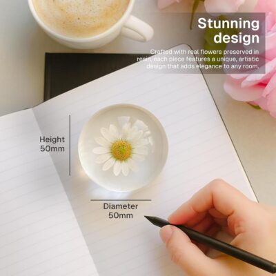 RoyalThum Real Daisy Resin Sphere Paperweight – 50mm