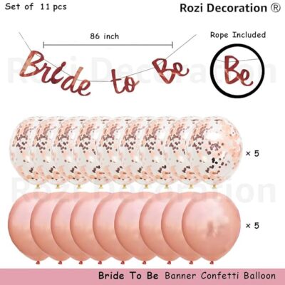 Rozi Decoration Bride to Be Combo Rose Gold Set Includes Banner, Balloons Foil Fringe Curtain Bridal Shower, Bride Groom Family- Pack of 14 Piece