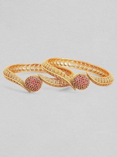 Add a touch of elegance and contemporary ethnic charm to your jewellery collection with these stunning Rubans bangles. Beautifully gold plated for a rich, radiant finish, these bangles blend traditional design with trendy style, making them perfect for festive occasions, weddings, parties, or everyday wear. Lightweight and comfortable to wear, they complement a variety of outfits — from sarees and salwar suits to modern dresses. Designed with attention to detail, this stylish set also makes a thoughtful gift for women and girls who love timeless yet fashionable jewellery. A versatile accessory that effortlessly enhances your overall look.