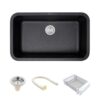 Ruhe® Matte Black Quartz Single Bowl Kitchen Sink with Round Corners - 31x19x9 inches | Noise-Reducing & Durable Kitchen Sink | Granite Sink Include Coupling, Waste Pipe & Vegetable Washing Basket
